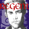 Description: a solemn, scruffy man with the word "regent" across his forehead